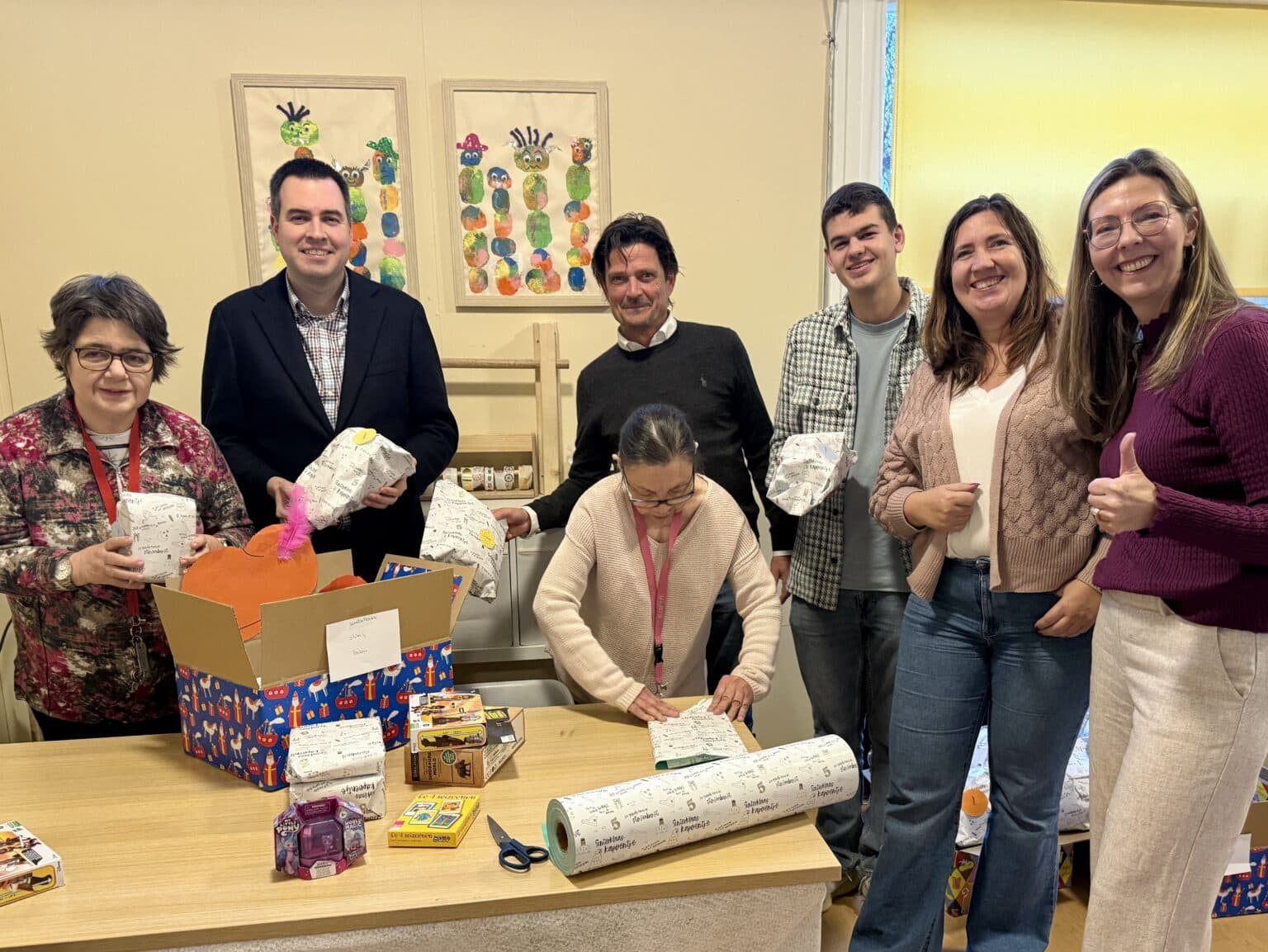 De cliënten van Stichting De Overburen speelden daarbij een belangrijke rol: met veel zorg en toewijding hebben zij alle cadeaus ingepakt, zodat deze tijdig kunnen worden verdeeld onder de aangesloten stichtingen, waaronder de Voedselbank en de Kledingbank.
